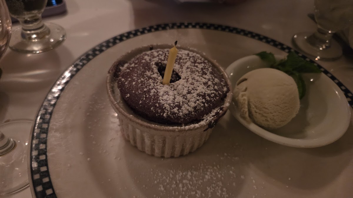 Nice local neighborhood French bistro. Loved the chocolate souffle. Other dishes were fine. House cab for $36/bottle only! Great value. Didn't get a chance to try their French Onion Soup as we might have missed it on the menu but later asked and was told they had it. Service was very good.